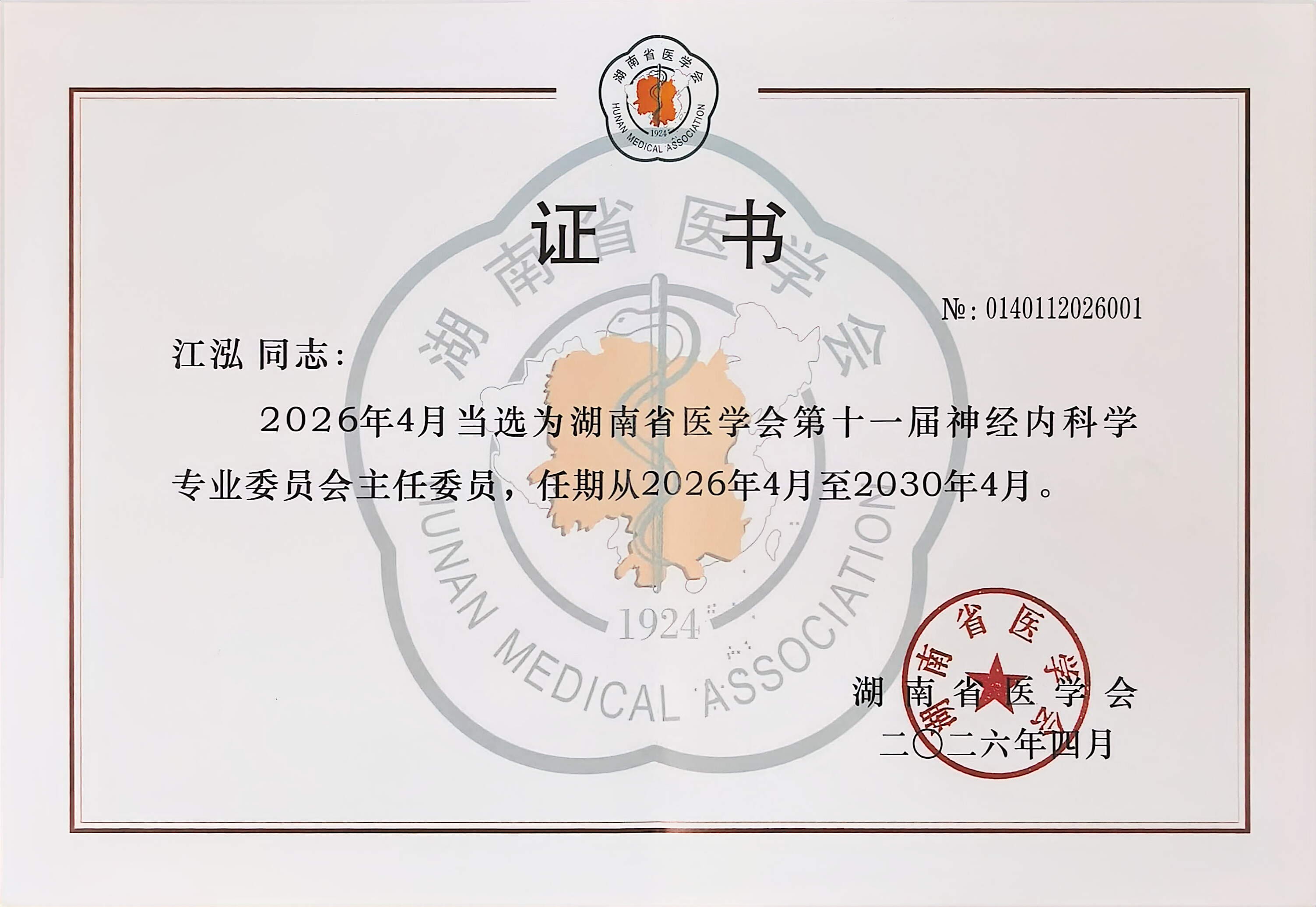 此次江泓教授和神经内科团队成员的当选,是湘雅三医院神经内科长期践行“临床需求为导向、科技创新为动力、人才培养为根本”发展理念的集中体现。以此为契机,医院将持续整合优势资源,进一步强化神经内科专科能力提升和学科建设,为湖南省乃至全国神经病学事业的高质量发展贡献更多湘雅智慧与力量。