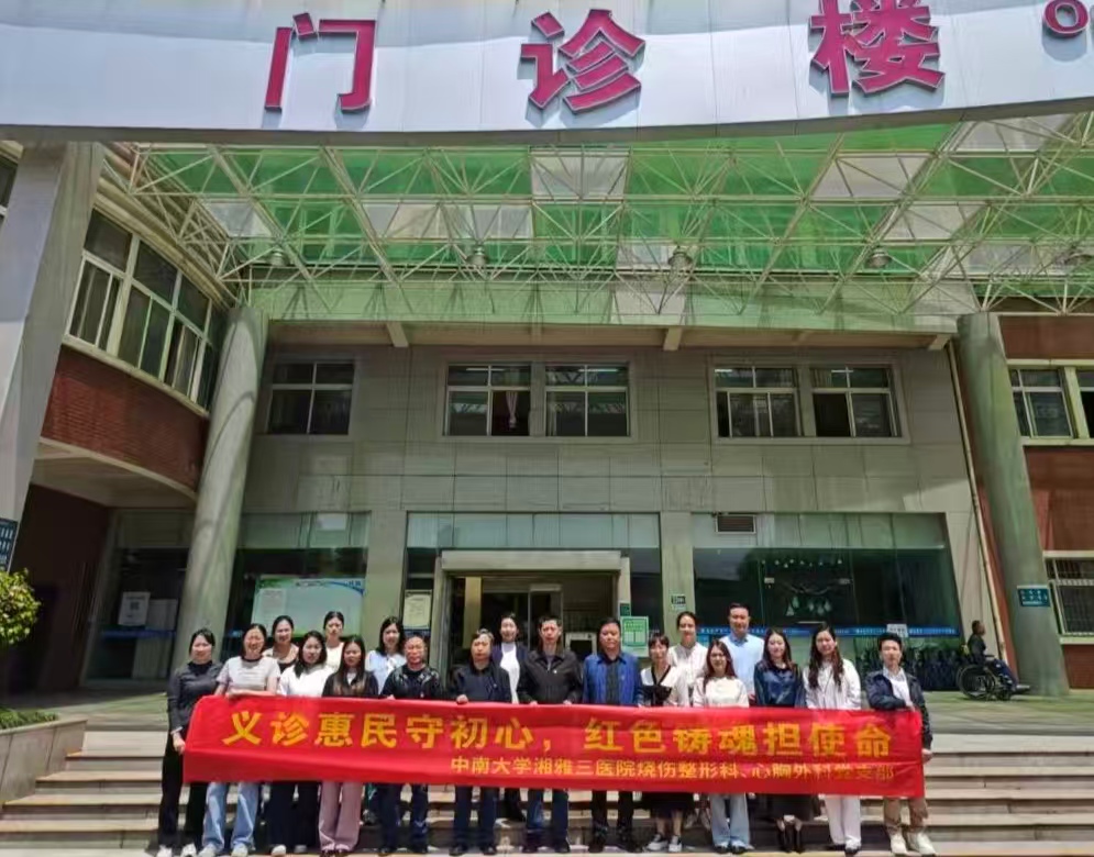 4月25日,湘雅三医院第一党总支心胸外科支部、第三党总支烧伤整形外科支部联合开展“义诊惠民守初心 红色铸魂担使命”主题党日活动。活动以“健康服务+红色教育”为主线,将优质医疗资源送到基层群众身边,把党性锤炼课堂融入红色教育现场,引导党员干部在为民服务中践初心、在追寻足迹中使命。