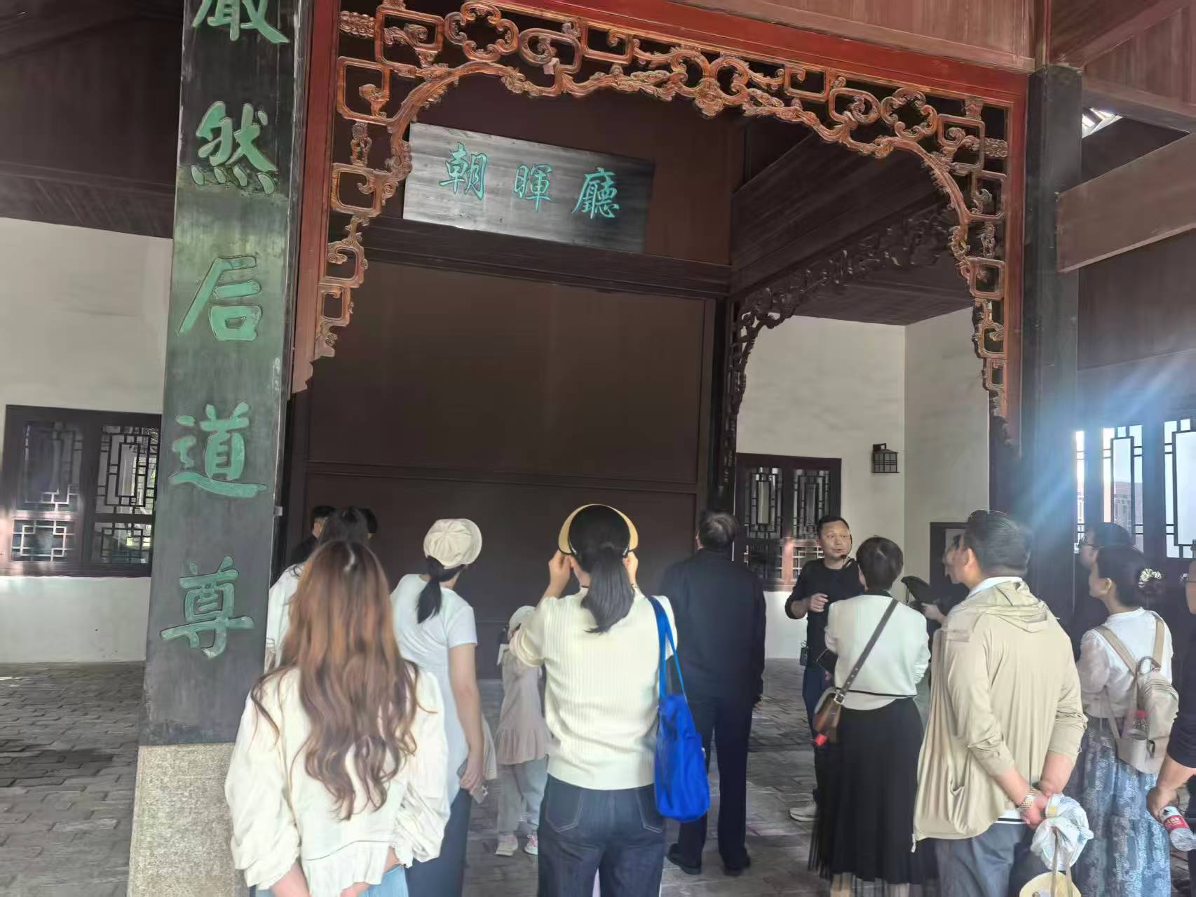 随后,全体党员来到全国爱国主义教育示范基地——东山书院开展现场教学。东山书院是毛泽东走出韶山、求学励志、立志报国的重要起点。一砖一瓦承载着湖湘学子的家国情怀,一廊一室记录着革命先辈追求真理、心忧天下的青春足迹。党员们沿着书院回廊认真参观,聆听青年毛泽东求学故事,感悟其“身无分文、心忧天下”的胸怀与志向。大家表示,作为医务工作者,要把先辈的求索精神转化为钻研业务、服务人民、守护健康的实际行动。