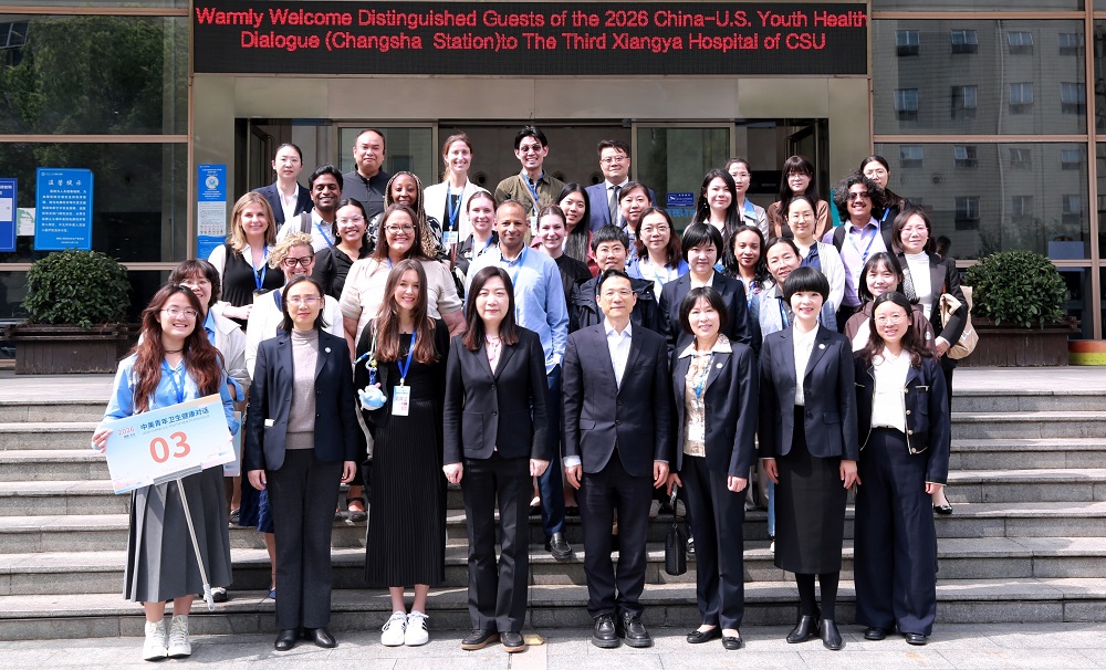 2026年4月23日,2026中美青年卫生健康对话(长沙站)嘉宾团一行20余人来中南大学湘雅三医院交流访问。湘雅三医院副院长左笑丛出席接待,活动由国际合作与交流办公室牵头组织,重症医学科、妇科、耳鼻喉科、护理部等相关科室负责人和医务人员代表参与。血管外科副主任徐宏博主持座谈交流。
