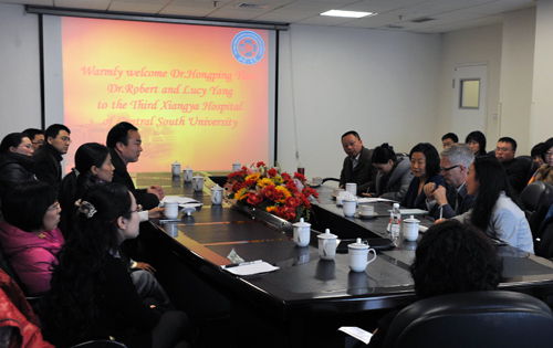 3月21日下午,雅礼协会美国雅礼协会卫生项目官员田红平博士、耶鲁大学Robert Rohrbaugh教授一行三人到访湘雅三医院,就住院医师培训项目进行交流。院领导邓云龙副书记、范自力院长助理及医院相关职能部门和临床科室负责人、住培项目主管、住院医师代表等参加座谈,座谈会由邓云龙副书记主持。