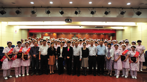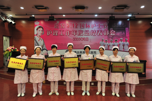 5月10日下午,外科楼二楼学术报告厅隆重举行了纪念5.12国际护士节暨《护士条例》实施五周年总结表彰大会。卫生厅工会主任、护理学会孙向明理事长,中南大学医管处姜新雅副处长,卫生厅医政处于艳萍副处长应邀出席会议。全体在院院领导、“创优”领导小组和支持小组全体成员、各党支部书记、各临床医技科室主任、职能科室负责人、护理部成员及全体护士长、护理安全小组和专业小组全体成员、护士代表共200余人参加了会议。会议由朱晒红副院长主持。