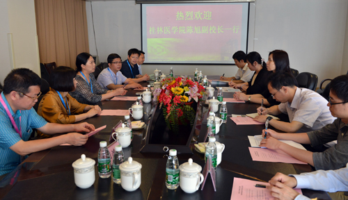 6月6日上午,桂林医学院副院长陈旭一行六人来到湘雅三医院进行参观访问,湘雅三医院党委书记罗爱静、副院长杨飞龙以及相关部门负责人等在外科楼19楼会议室接待了来访客人。