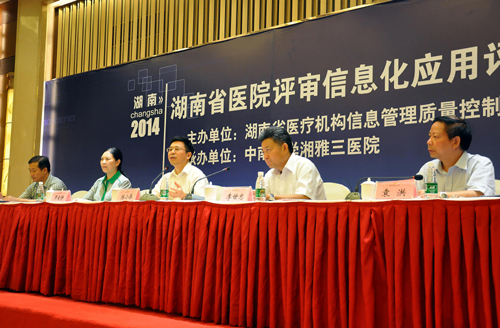 开幕式由中南大学湘雅三医院副院长袁洪主持。湖南省卫生和计生委副主任陈小春,湖南省卫生和计生委医政处副处长李世忠,中南大学湘雅三医院党委书记、湖南省医疗机构信息管理质控中心主任罗爱静,湖南省儿童医院副院长李爱勤及全体质控委员们参加了会议,此次会议吸引了来自长沙、湘潭、常德、岳阳、永州、益阳等地区的医院的副院长、信息主任及相关代表近300人。