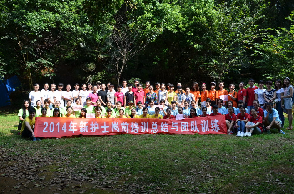 8月23日上午,2014届新护士岗前培训总结及团队训练在王陵公园成功举办,这是护理部首次对新进护士开展的户外培训活动。2014届全体新护士、2011-2013届新护士代表、护理部全体成员、培训老师代表共90余人参加了本次活动。2013届护士刘巧担任本次活动主持人。
