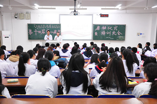 启动仪式后,门诊护理单元护士长肖秀珍、12病室护士长杨艳为全体志愿者上了两堂生动的志愿培训课。在培训中,肖老师告诉同学们,关注细节是爱心的呈现、好的沟通是爱的窗口。杨老师则用生动幽默的言语,图文并茂地教会了大家处理问题要学会分别对待,解决问题一定要用对方法。