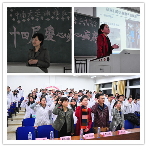 3月26日晚,春雨满载着爱心洒向了中南的校园。由湘雅三医院团委与湘雅医学院红十字会联合开展的第十四期“爱心病房”、第三期“爱心门诊”启动仪式暨志愿者培训大会在中南大学新校区教学楼A座举行。医学生志愿者们用一颗颗青春热情的心在这个雨夜播撒着爱的种子。