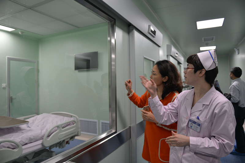 在血液科主任刘竞教授等陪同下,专家们有序参观了血液科造血干细胞移植病房,对病房设施及管理给予高度评价,参观期间,专家们就造血干细胞移植病人的管理等问题进行了深入的交流讨论,对病房相关设置提出了宝贵的建议,来自各地的专家十分看好血液科的发展前景,强烈地表示要加强合作交流的愿望。