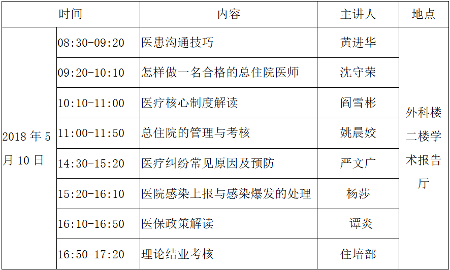 临床技能考核时间:2018年5月15日上午08:00-17:30