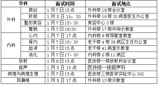 2、1月7日下午—8日:学科考核小组面试(见下表)