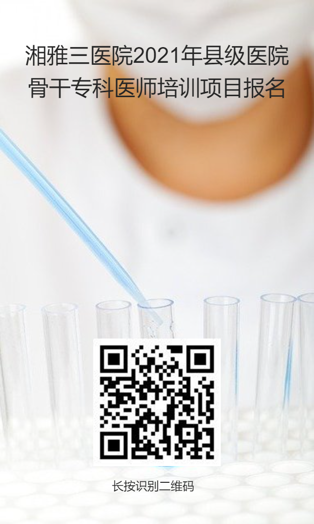 根据湖南省卫生健康委科教处《关于组织做好2021年度紧缺人才培训和县级医院骨干专科医师培训工作的通知》(湘卫科教处便函[2021]23号),现面向全省招收县级医院骨干专科医师培训学员。