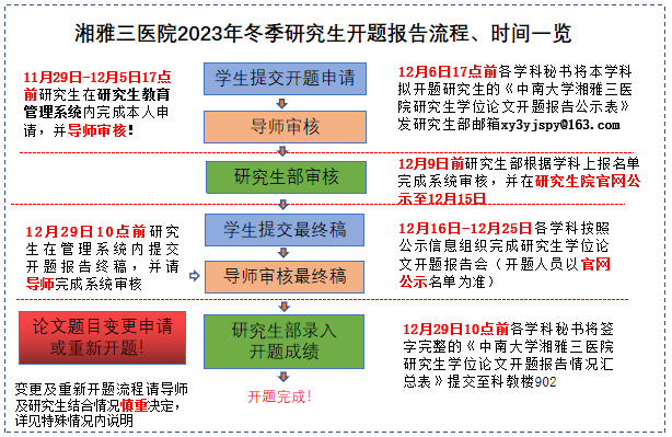 关于组织中南大学湘雅三医院2023年冬季研究生学位论文开题的通知