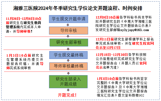 关于组织中南大学湘雅三医院2024年冬季研究生学位论文开题的通知