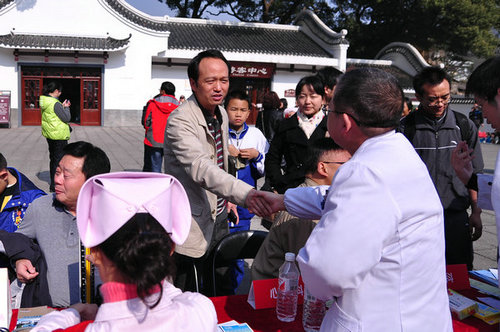 “湘雅三医院将门诊‘搬’到了岳麓山,看病真方便。”义诊活动得到了市民的争相称赞。在义诊现场,医生护士志愿者们热心地帮社区居民量血压、血糖,还为市民发放了免费药品,向群众进行了预防常见病的宣传教育,还利用传单、健康手册等形式大力宣传医学保健知识。老百姓大药店为义诊免费提供常用药品。